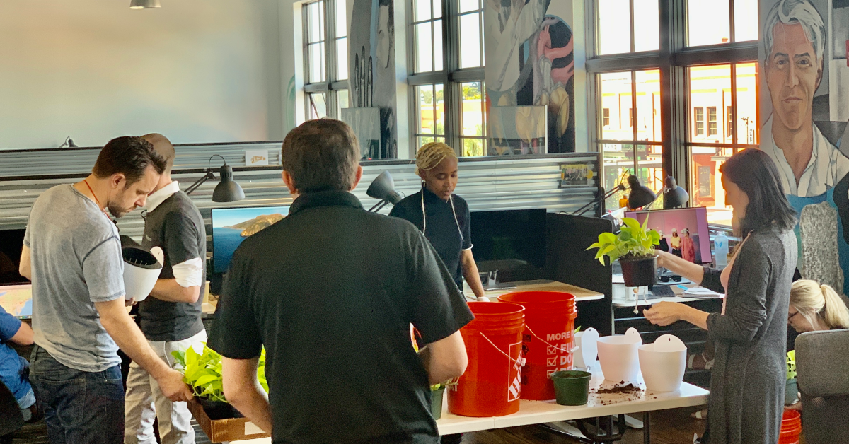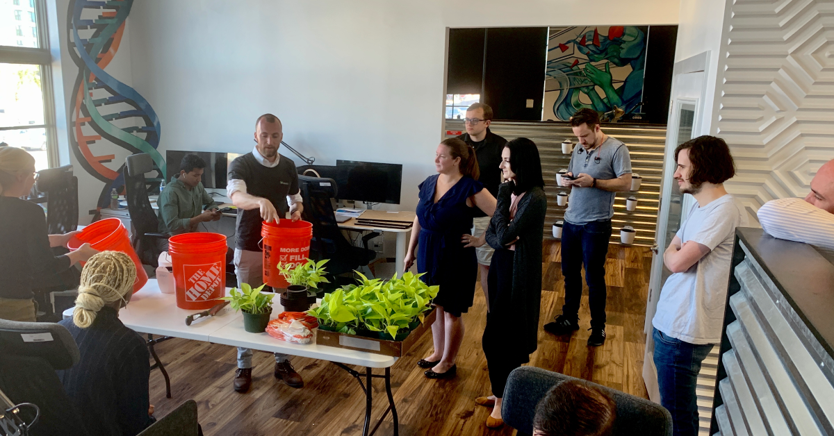 LEVO Health is going green! In addition to our new headquarters being a LEED Gold certified building, featuring a green roof, solar panels, and recycled materials, our team decided to tackle the indoor air by potting a series of one-hundred pothos plants around the office as living walls.